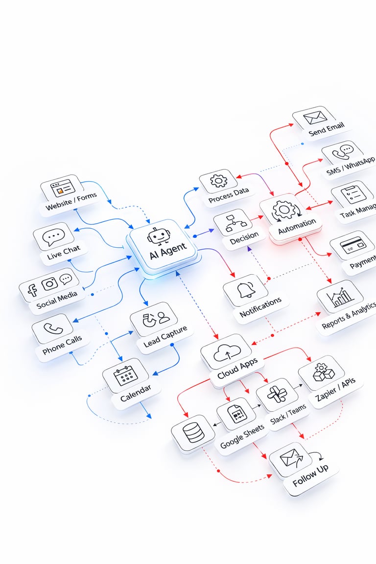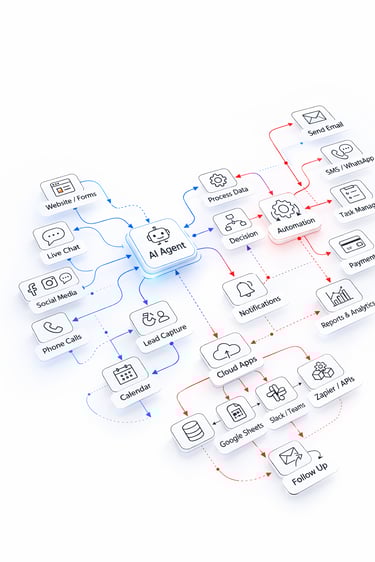 Structured AI systems that help your business capture leads, respond faster to customers, and automate daily operations using AI Automation workflows and Intelligent AI Agents.